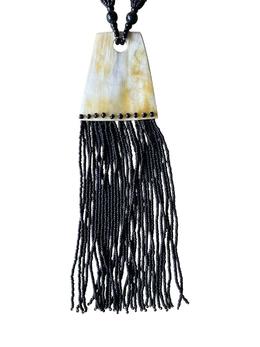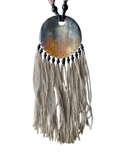 Glas beads Halskette mit beweglichen Fransen und Hornscheibe