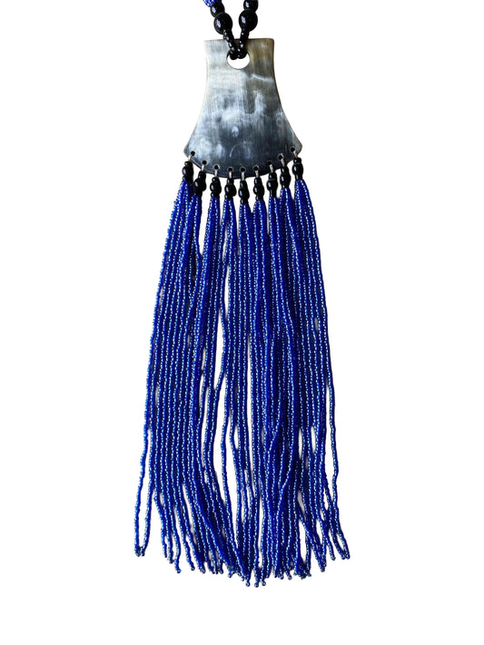 Handgearbeitete Fransen Halskette in intensivem Blau