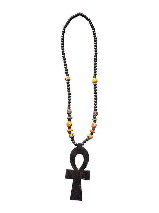 "Ankh Pendant" Handgefertigte Holzperlenkette aus Ghana