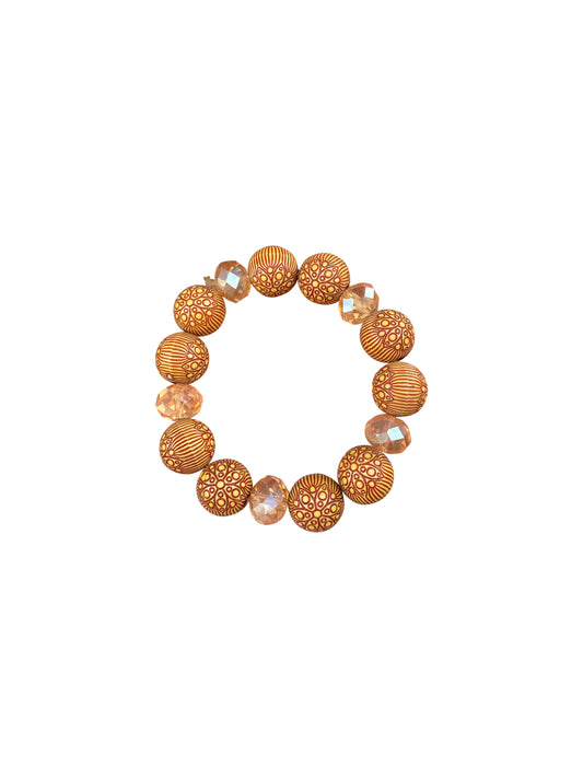 Handgefertigtes Glasperlen-Armband für Damen aus Ghana Gold/Orange Musterperlen mit Kristall-Details