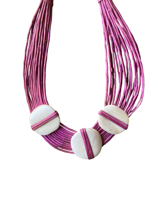 "Natural Statement" Schmuckkette aus behandeltem Kuhknochen und gefärbtem Ziegenleder
