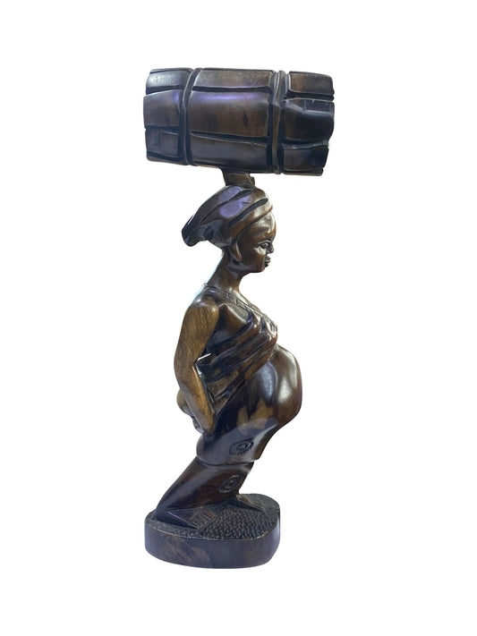„Hüterin des Lebens“ – Handgeschnitzte afrikanische Frauenskulptur aus Ebenholz (31 × 10 × 4 cm)