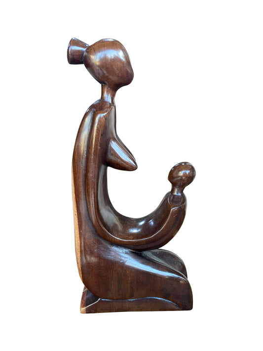 Mother & Child – Handgeschnitzte Ebenholz-Skulptur | Sinnbild für Geborgenheit & Liebe (32 × 16 × 5 cm)