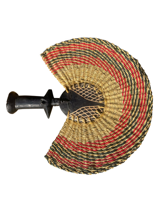 Geflochtener Fächer aus Elefantengras & Ziegenleder (47×30 cm), Mehrfarbig