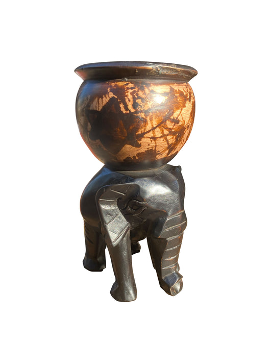 „Träger der Sonne“ – Elefantenfigur mit aufgesetzter Schale, Ossese-Holz (23×12 cm)
