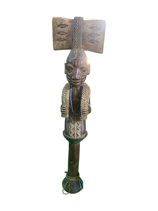 Shango Figur auf Stand im traditionellen Stil – handgefertigte Holzskulptur Replikat
