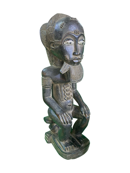 Ruhende Baule Frauenfigur – klassische Sitzskulptur aus Westafrika