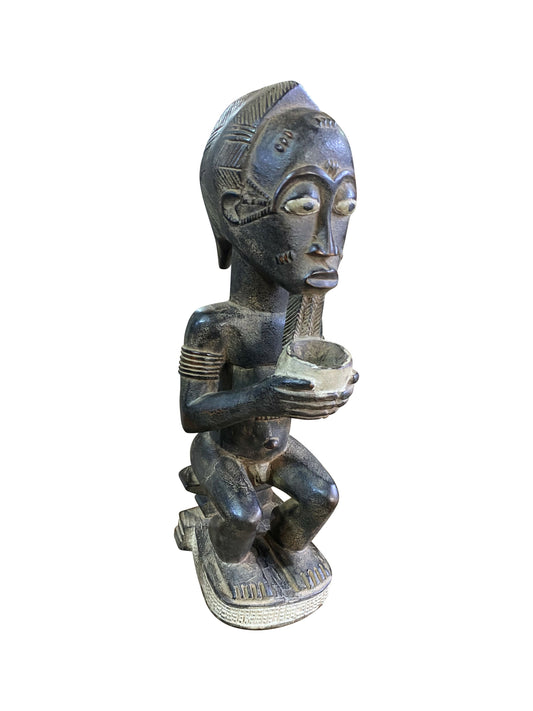 Baule Figur sitzender Mann mit Schale – Replikat traditioneller Holzskulptur aus Osese Holz