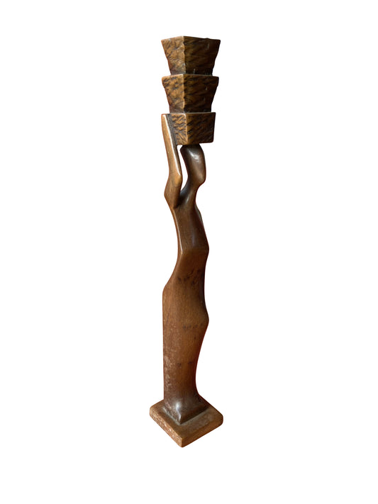 Abstrakte Frauenskulptur aus Ebenholz mit Wassergefäß