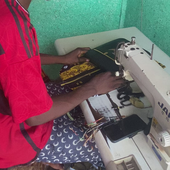 Chaque pièce est un authentique travail artisanal ghanéen , confectionné par des artisans expérimentés qui allient à la perfection motifs traditionnels et fonctionnalité moderne.