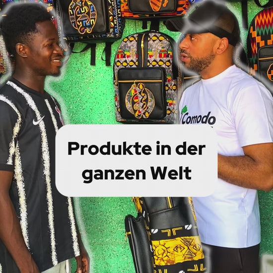 Le sac à dos à motif tribal est un exemple remarquable de l'artisanat traditionnel ghanéen . Son motif géométrique intense aux couleurs éclatantes lui confère une profondeur particulière et rend chaque pièce véritablement unique.