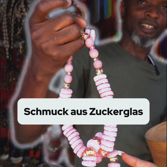 Die Perlen liegen angenehm auf der Haut, während die leichte Verarbeitung für hohen Tragekomfort sorgt. Jedes Set wird sorgfältig von ghanaischen Kunsthandwerker*innen gefertigt, wodurch jedes Schmuckstück zu einem kostbaren Unikat wird.