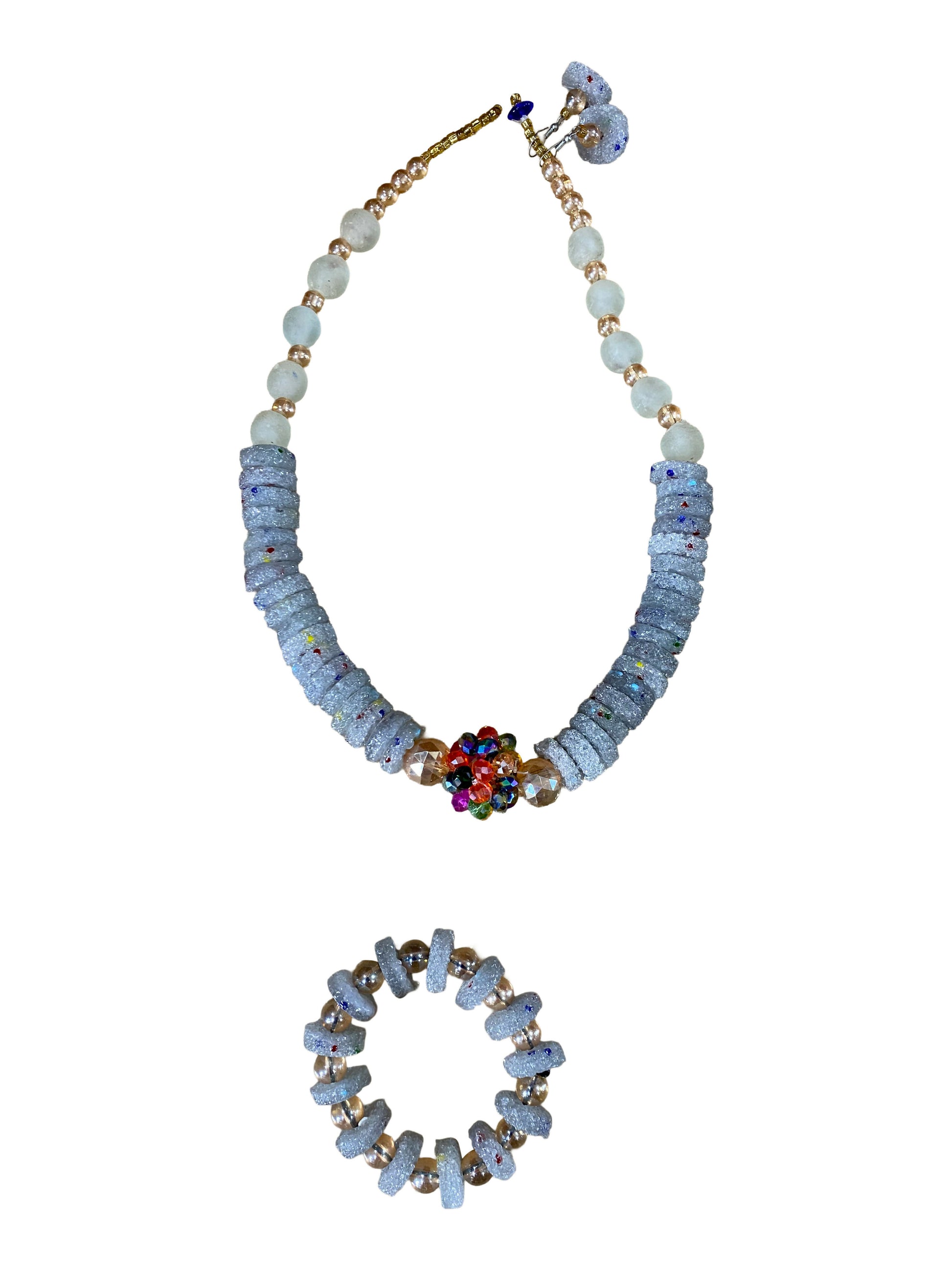Edles Krobo-Schmuckset Hellblaue Perlen mit bunten Funkelelementen