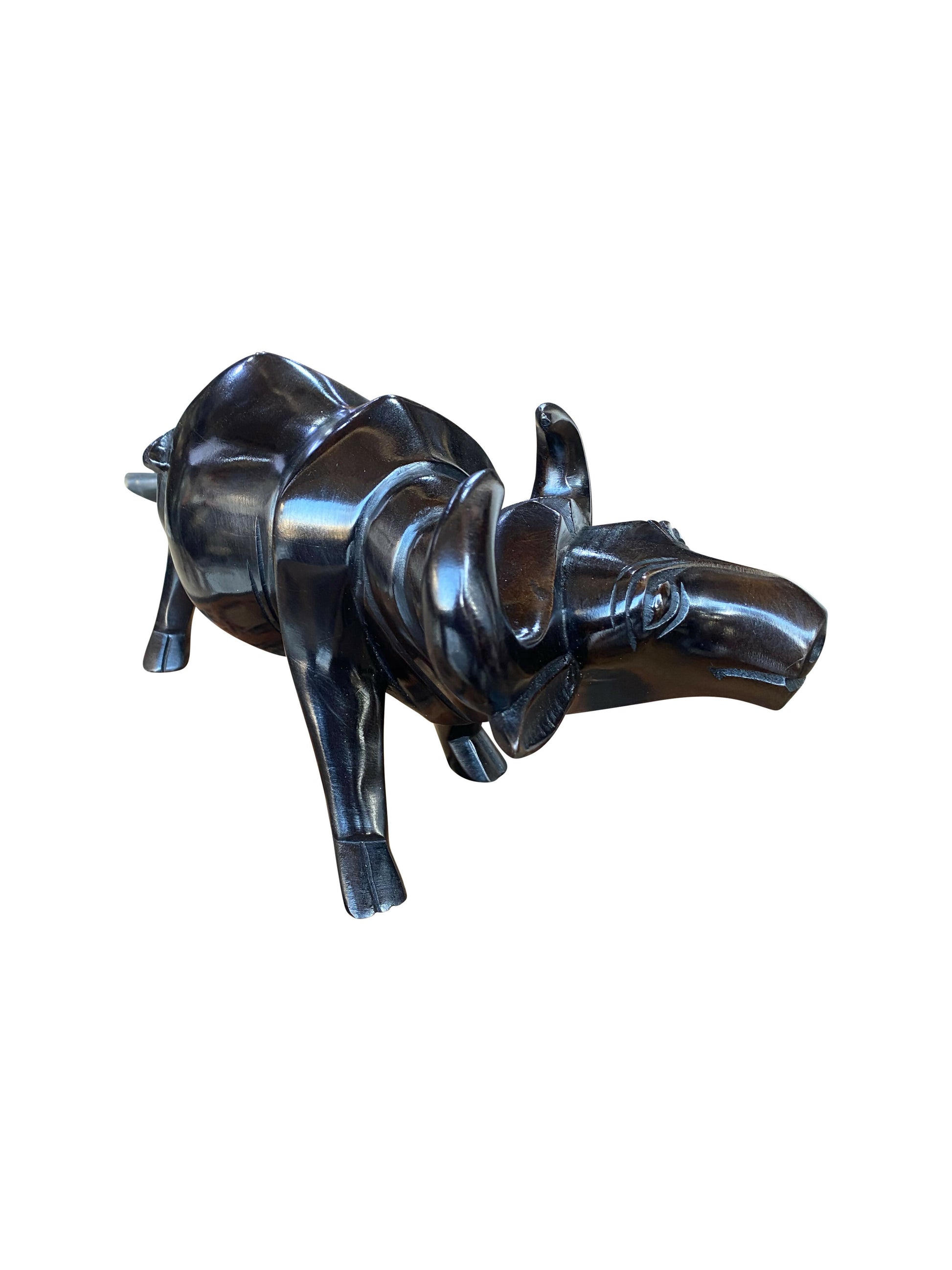 Buffalo Spirit – Handgeschnitzte Ebenholz-Skulptur | Sinnbild für Kraft & Standhaftigkeit (42 × 13 × 20 cm)