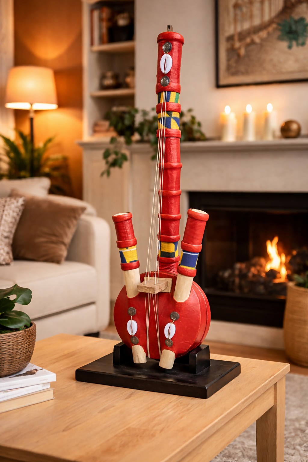„Scarlet Spirit“ Handgefertigtes westafrikanisches Saiteninstrument aus Ghana