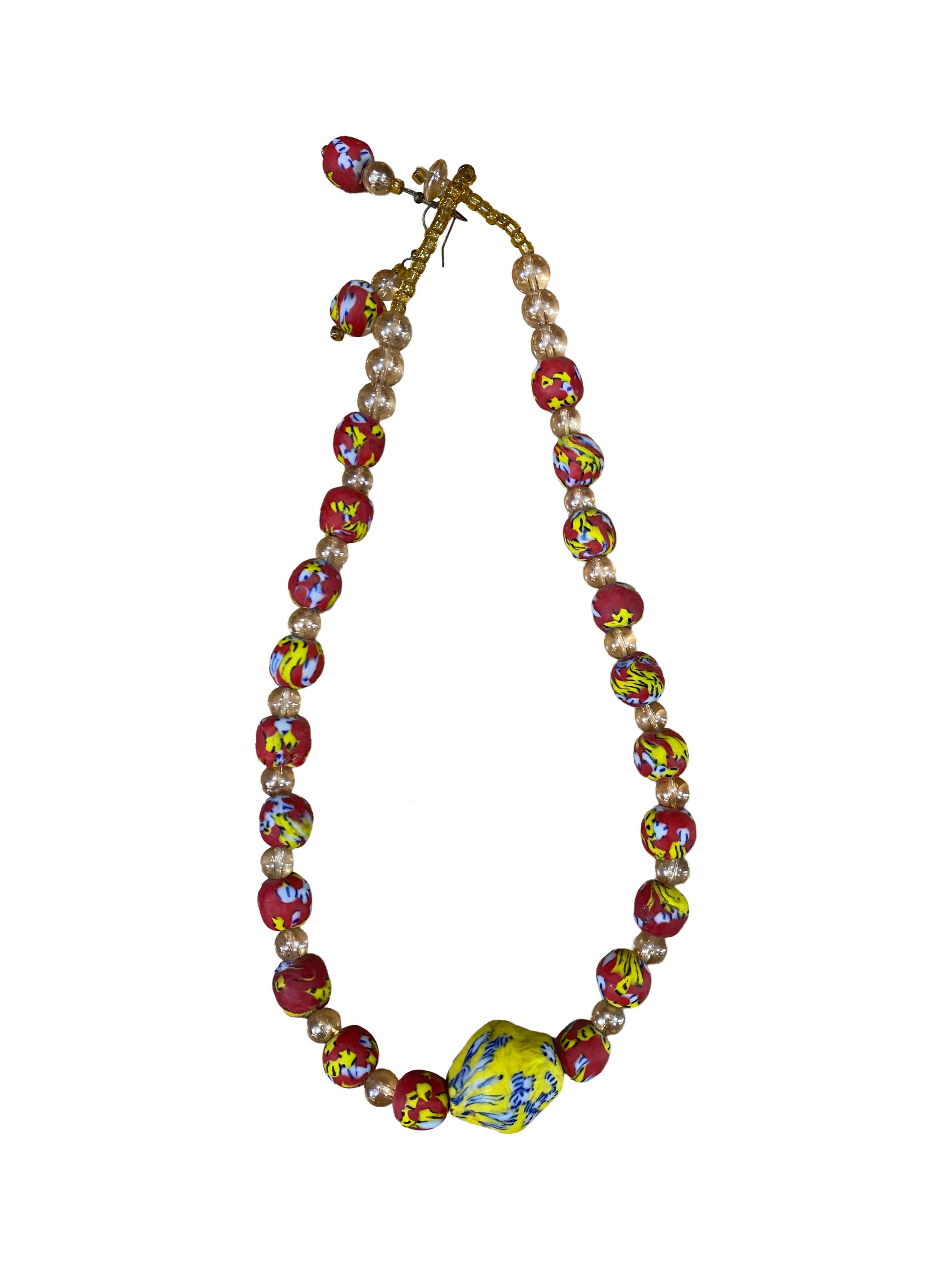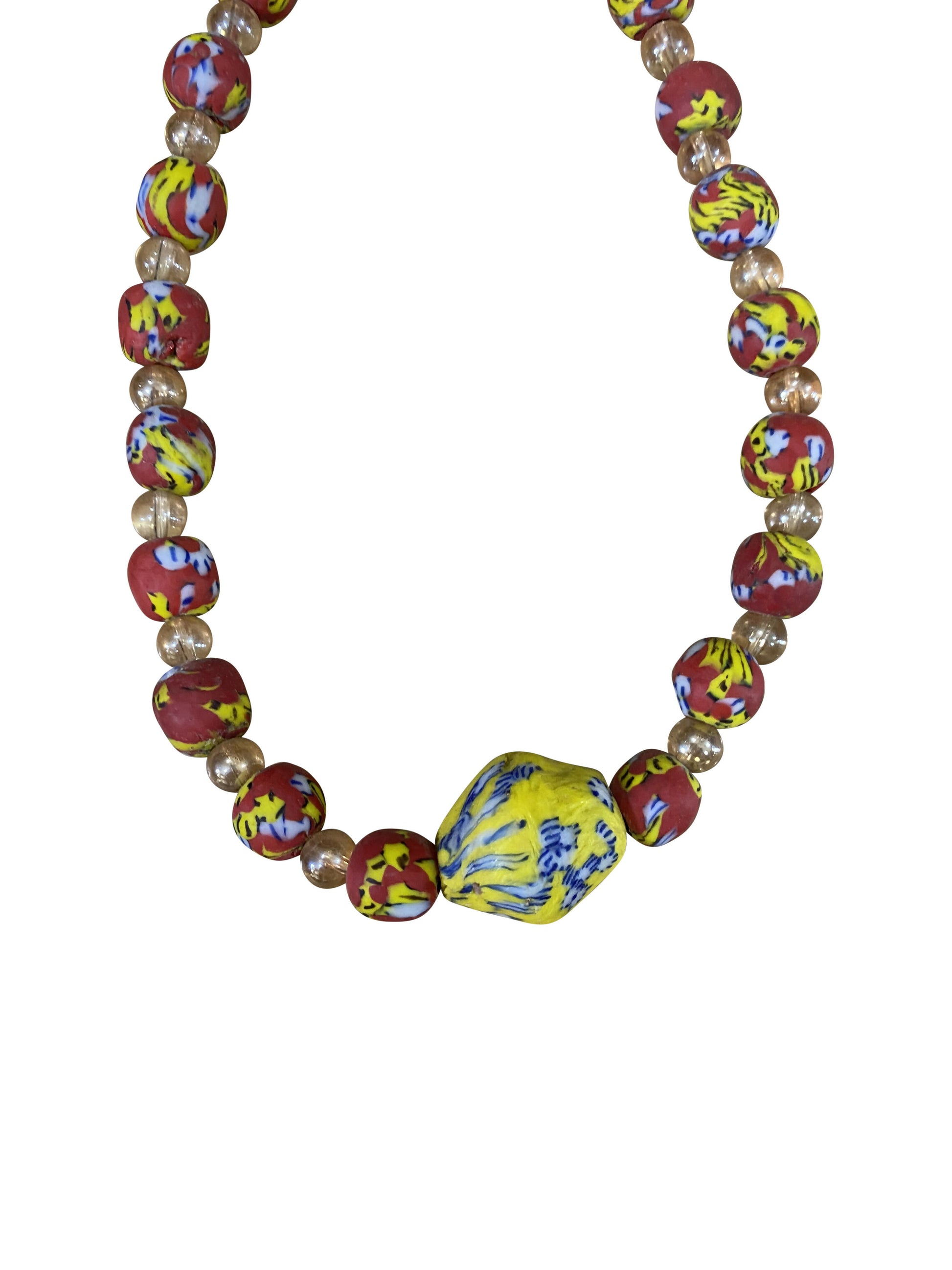 Dieses außergewöhnliche Krobo-Perlen Schmuckset aus Ghana erzählt die Geschichte echter Handwerkskunst präzise, kunstvoll und voller Seele gefertigt. Jede Perle entsteht in traditioneller Pulverglastechnik und wird liebevoll von Hand geformt, bemalt und zu einem harmonischen Ensemble zusammengesetzt.