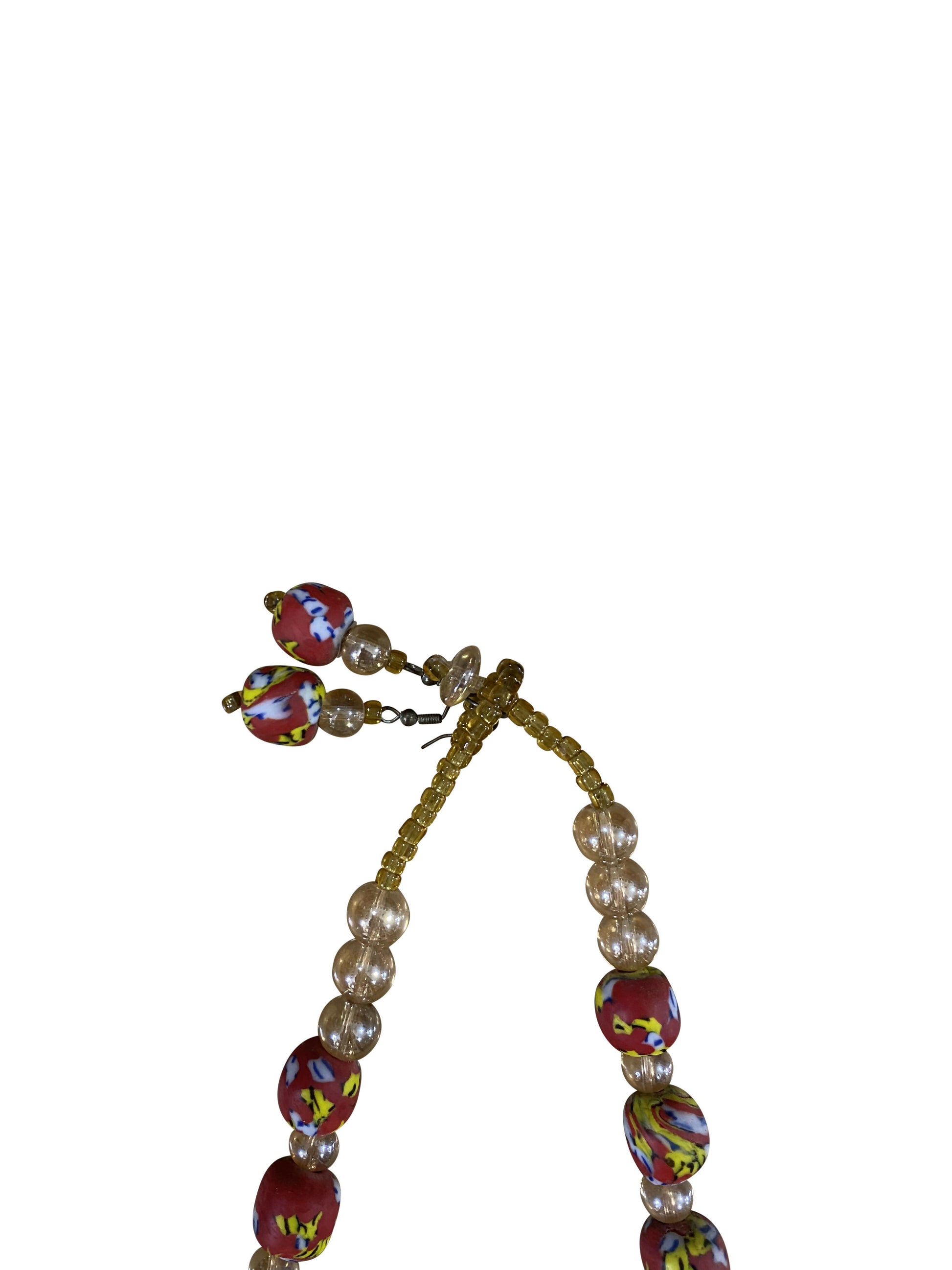 Krobo-Perlen Duo Edle Kette & Ohrstecker mit leuchtendem Mittelstein